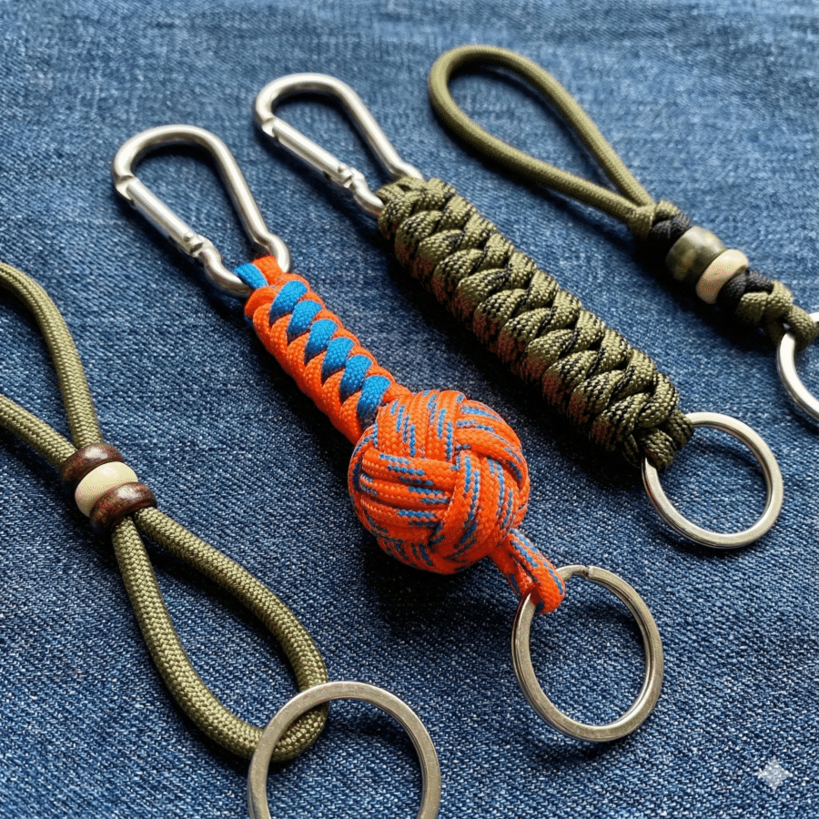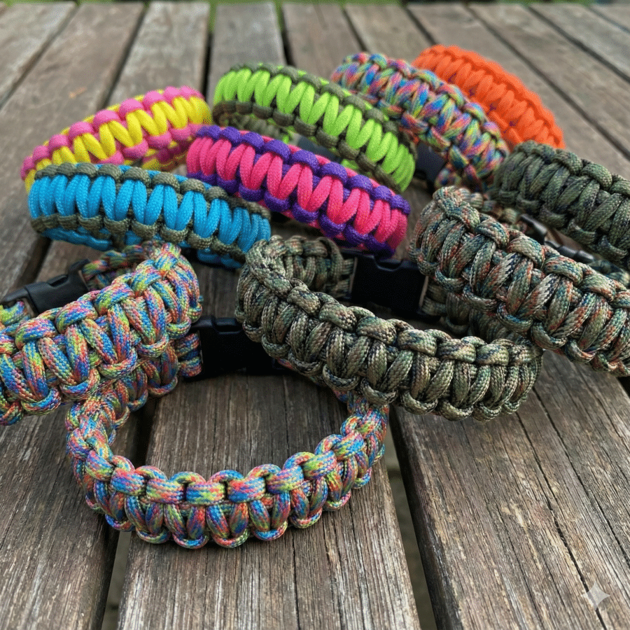 パラシュートコード(パラコード)を使用して、様々なアクセサリーや実用アイテムを作るクラフトです。パラコードは非常に丈夫で、カラーバリエーションも豊富。編み方や色の組み合わせ次第で、あなたの創造力を活かした世界に一つだけの作品を生み出すことができます。